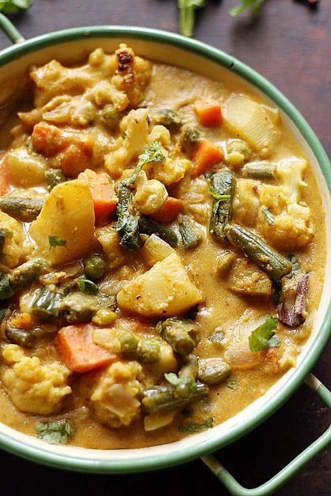 Mixed Vegetable Korma is een smaakvol Indiaas gerecht bereid met een mix van verschillende groenten, zoals bloemkool, wortelen, erwten, aardappelen en meer. De groenten worden gekookt in een romige en kruidige saus op basis van kokosmelk, cashewnoten, yoghurt en een mix van specerijen zoals komijn, koriander, kurkuma en garam masala. Het resultaat is een smakelijk gerecht met een rijke textuur en een milde, aromatische smaak. Mixed Vegetable Korma wordt geserveerd met rijst.