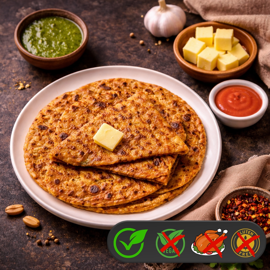 Ui Paratha is een heerlijke Indiase platbroodsoort, rijk gevuld met gekruide uien. Het deeg wordt bereid met volkorenmeel, water en een snufje zout. De vulling bestaat uit fijngehakte uien, koriander, groene chilipepers en een aromatische mix van specerijen zoals komijn en kurkuma. De paratha wordt in een hete pan gebakken met een beetje ghee tot hij goudbruin en knapperig is.